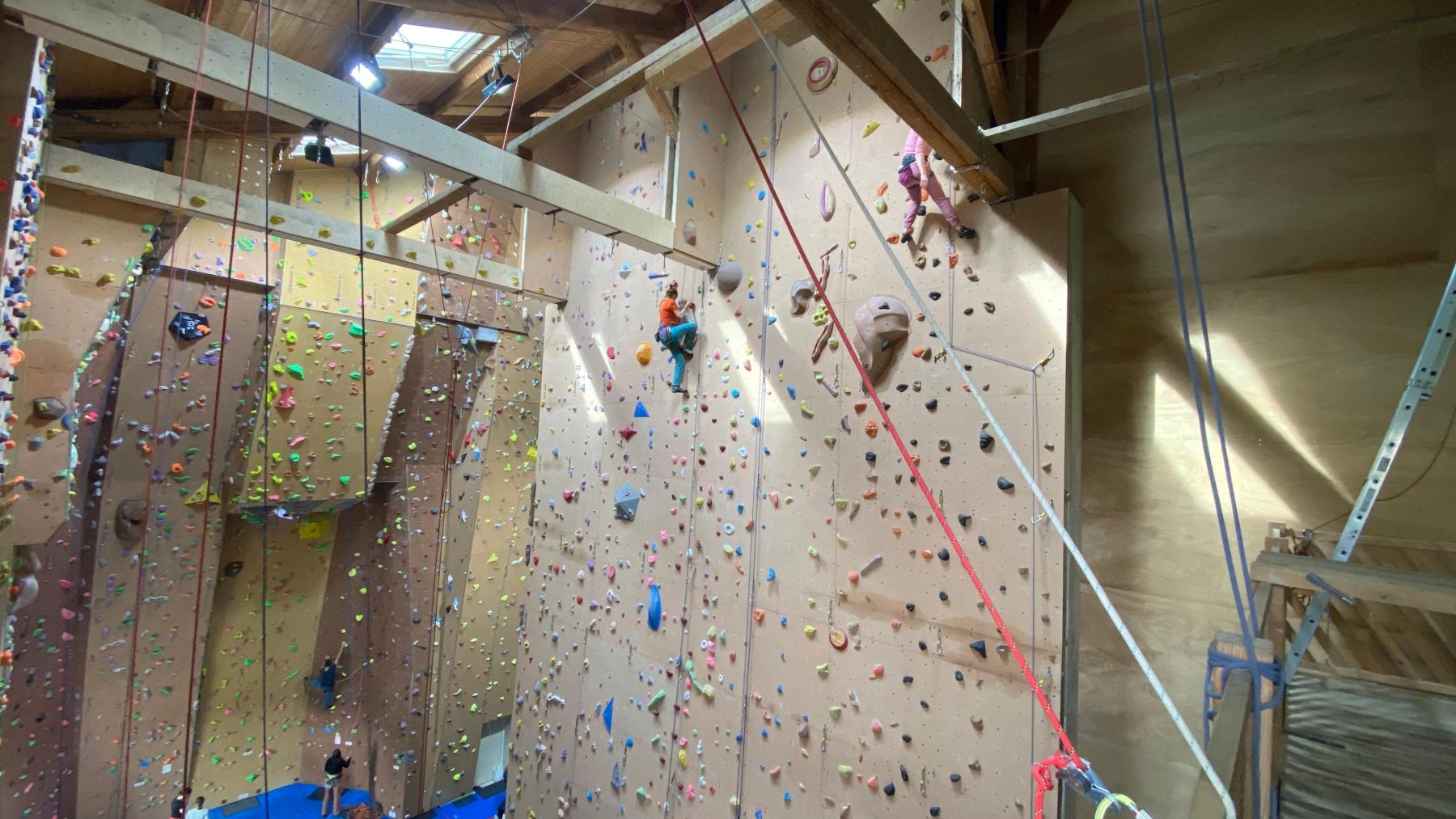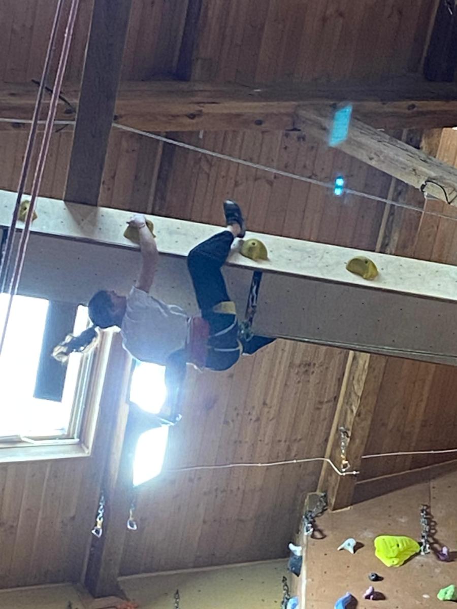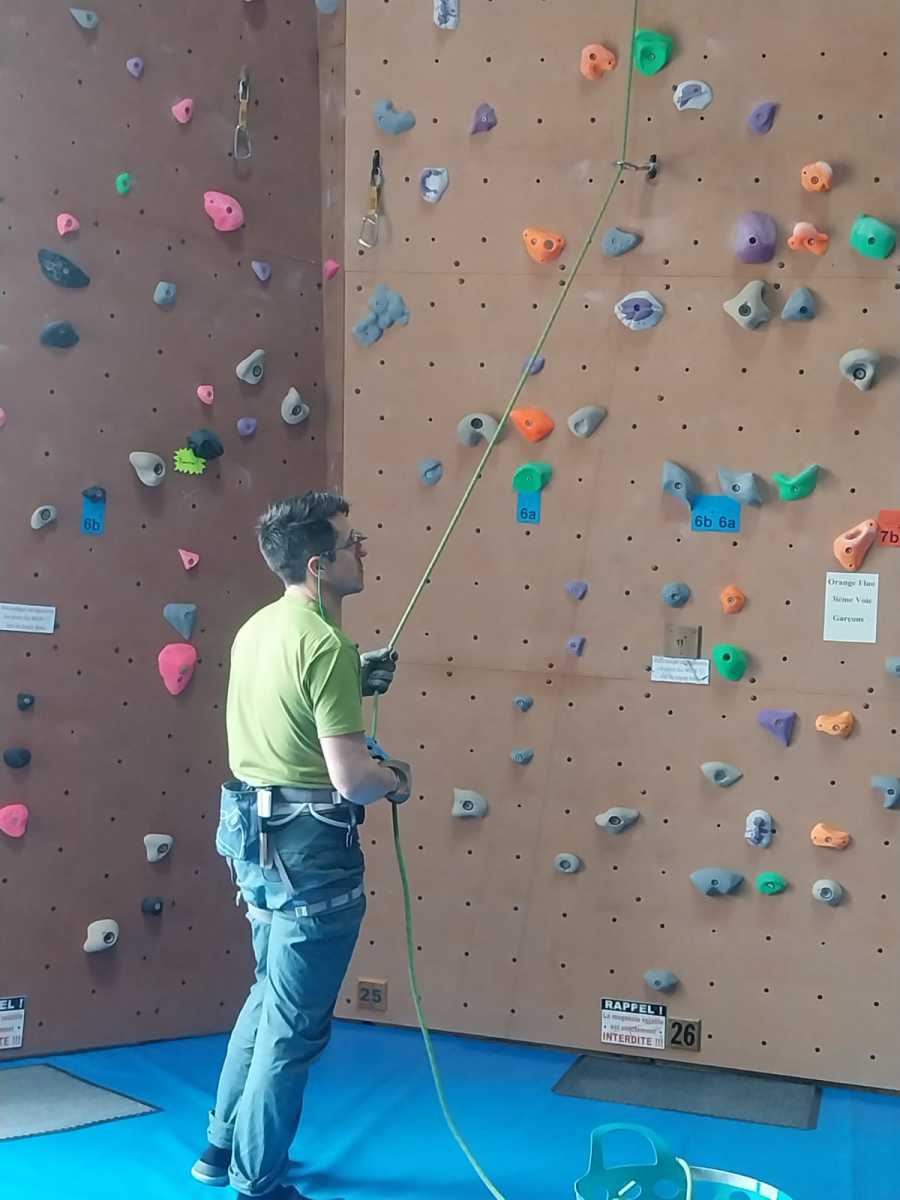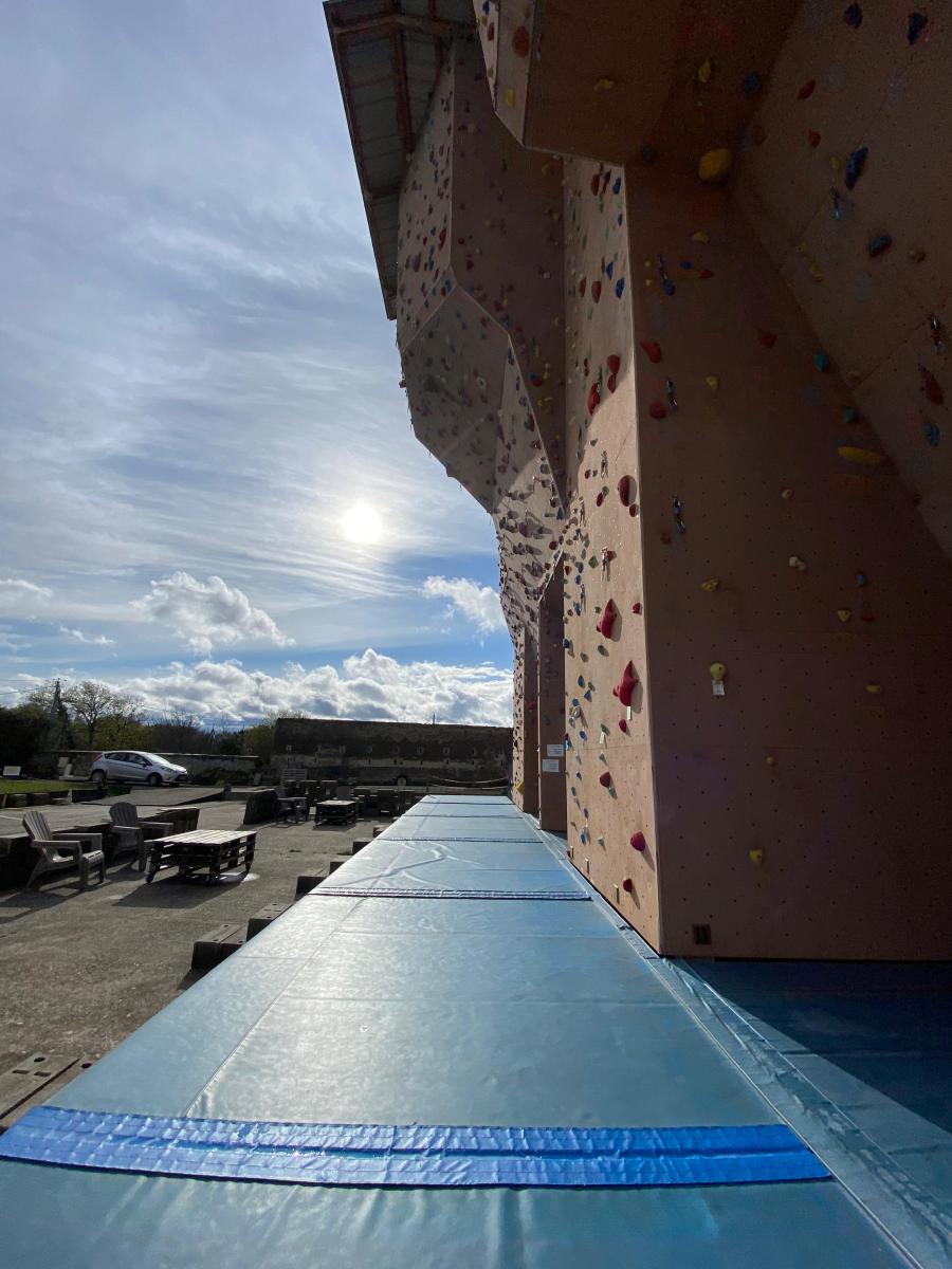 Tout commence, par un petit déjeuner et explication du défi de la journée, cumuler le plus de voies possibles et atteindre des sommets. Puis l’envie plus forte que tout, rapidement, les premières voies s’enchainent. Tout le monde s’en donne à cœur joie. De la voie, du bloc, sans oublier la traversée de poutre à plus de 10m du sol !