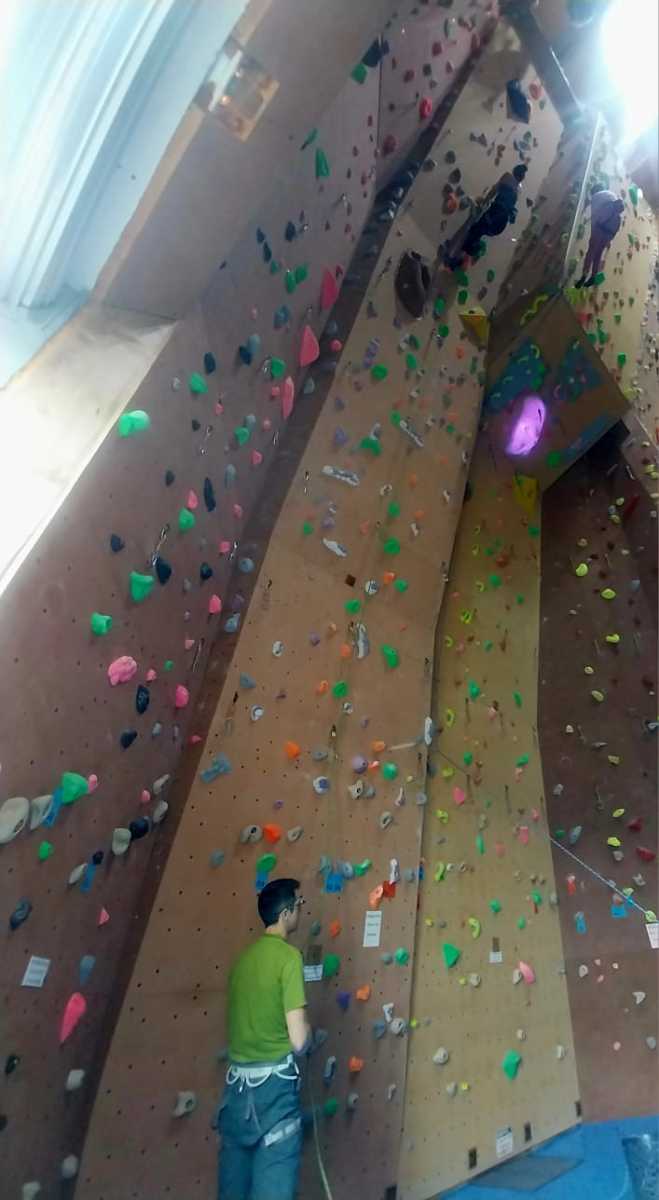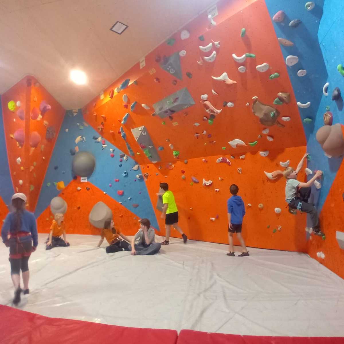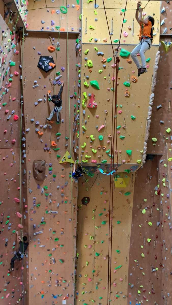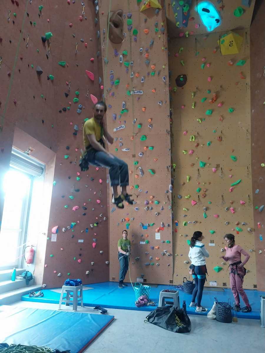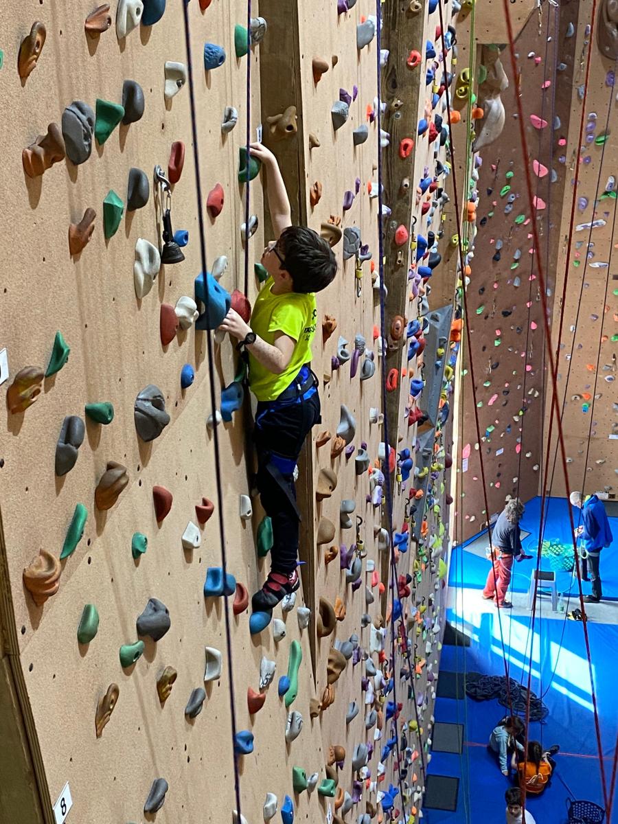 Tout commence, par un petit déjeuner et explication du défi de la journée, cumuler le plus de voies possibles et atteindre des sommets. Puis l’envie plus forte que tout, rapidement, les premières voies s’enchainent. Tout le monde s’en donne à cœur joie. De la voie, du bloc, sans oublier la traversée de poutre à plus de 10m du sol !