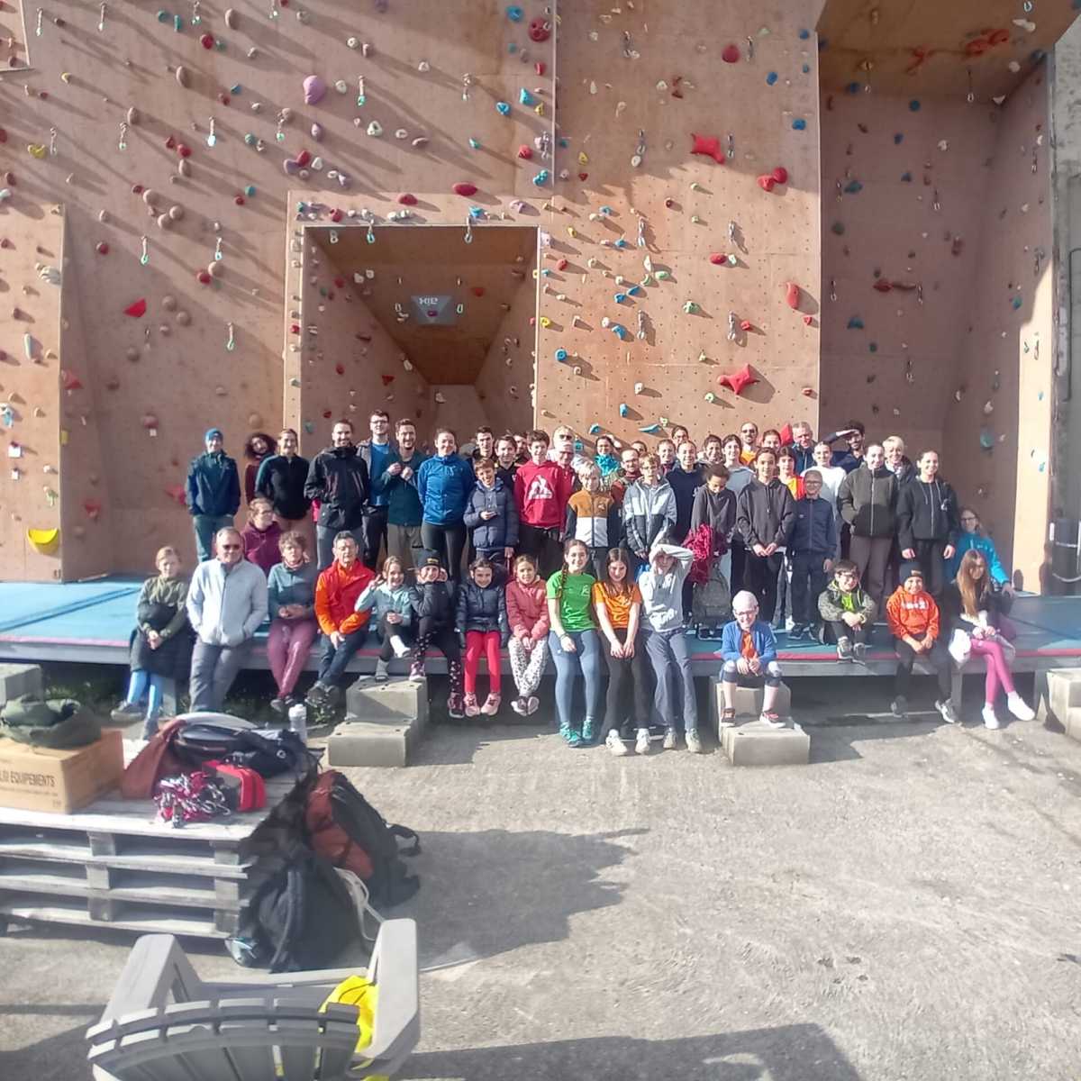 Nous avons comptabilisé plus de 9000m au cumul! (621 voies) dans cette salle où les voies font 21m au plus haut. Certains ont passé la dernière demi-heure à faire des allers-retours pour faire gonfler les chiffres ! nous avons récompensé au total 28 personnes ;les 7 premiers inscrits à la journée, nos encadrants force vive du club et nos jeunes grimpeurs méritant.