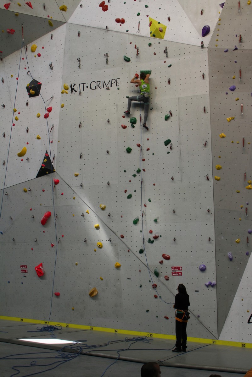 Le dimanche 04 décembre au matin, c’était aux U16 Filles de grimper (Thilleli Jacqua Medjahed et Nina Blanc-Lapierre). Avec un circuit tourné sur la dalle, les placements et les sensations, les filles avaient leurs cartes à jouer…mais elles perdent beaucoup de places à cause d’essais en trop, encore… Mais 4 beaux blocs de topés pour Thilleli tout de même!